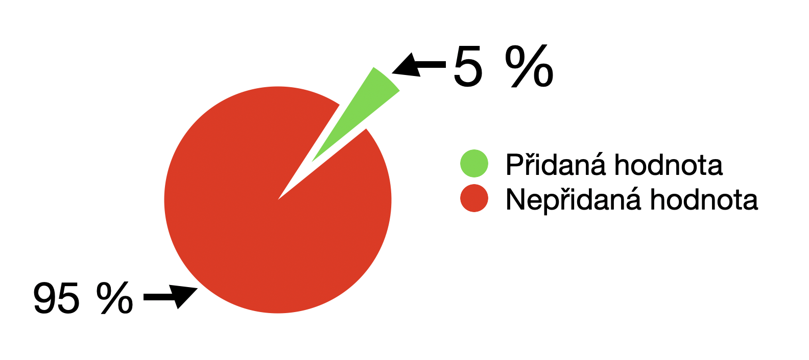 Se zaváděním zdravého myšlení se zákonitě změní i pohled na to co je a co není přidaná hodnota. pojďme si tedy zopakovat co je přidaná hodnota. Na obrázku vidíte běžný poměr hodnot v téměř každé firmě.