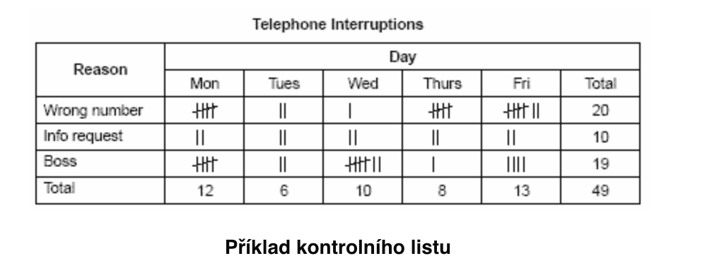 Nebo lépe v českém jazyce "kontrolní list" Už z podstaty tohoto slova je jasné, že se bavíme o nějaké kontrole. A ano je tomu tak. Jedná se o jeden ze sedmi základních nástrojů kvality. Je to nejjednodušší a neefektivnější způsob, jak sbírat data.