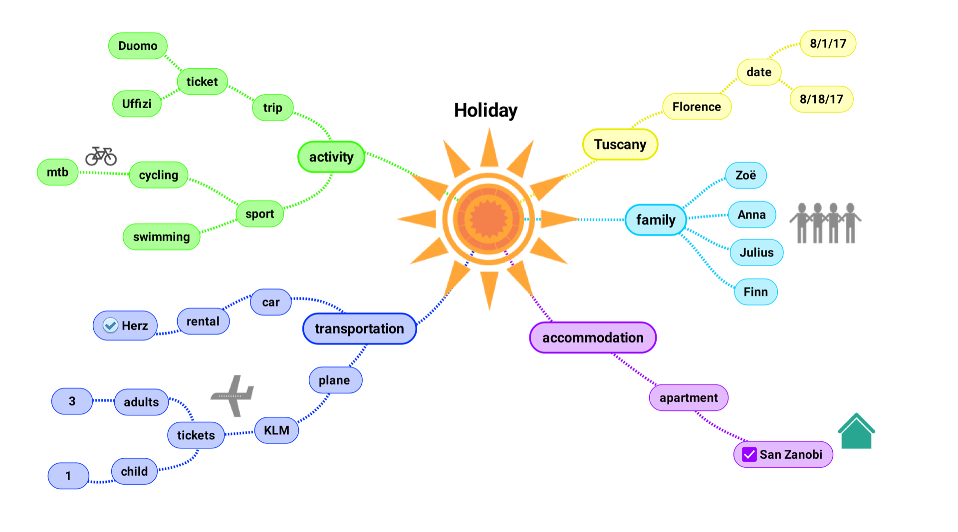 O co jde? Je to vlastně jednoduché. Jak už sám název napovídá jedná se o myšlenky, které se vloží do strukturované mapy. Tedy do takového "pavouka" nebo spíš "chobotnici" chcete-li. Rozvíjíte tím svůj pohled na věc a souvislosti mezi jednotlivými prvky, uvolňujete mozkovou kapacitu a zároveň trénujete kreativitu. A výsledky jsou někdy uměleckými díly, jak můžete vidět výše. Zkuste si do vyhledávače zadat mind maps a uvidíte. Navíc myšlenkové mapy můžete použít opravdu kde vás jen napadne. Nemusí to být zákonitě jen řešení problémů, ale třeba příprava dovolené